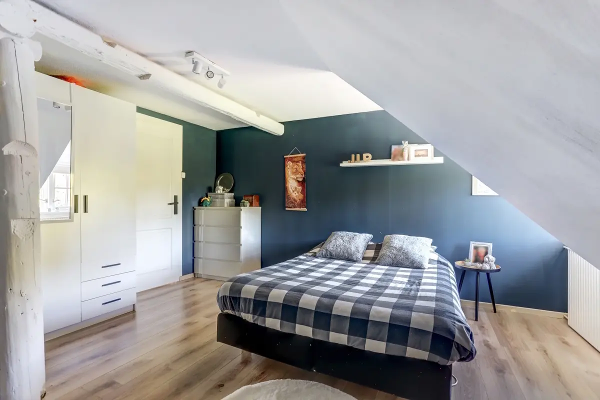 Met maar liefst vier volwaardige slaapkamers is deze verdieping een droom voor elk gezin — of u nu ruimte zoekt voor opgroeiende kinderen, logees, een werkplek aan huis of een hobbykamer. De kamers zijn stuk voor stuk netjes afgewerkt, voorzien van dakramen of dakkapellen en beschikken over charmante schuine lijnen die zorgen voor een knusse, gezellige sfeer. De houten spanten die op sommige kamers zichtbaar zijn, geven een warm accent en herinneren subtiel aan de boerderijgeschiedenis van dit huis.